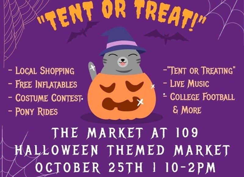 The 2nd Annual “Tent or Treat” Halloween at The Market at 109 (3301 TN-109, Lebanon, TN 37090) takes place on Saturday, October 25th, 2025, from 10 am – 2 pm.