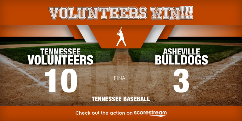 February 17, 2026 — No. 13 Tennessee improved to 4-0 with a convincing 10-3 win over UNC Asheville at Lindsey Nelson Stadium in front of 5,685 fans. The Vols pounded out 14 hits and used six pitchers to keep the Bulldogs in check.